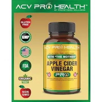 ACV Pro Apple Cider Vinegar Capsules Certified Organic with Mother ACV Pills Detox Cleanse Acid Reflux Relief Support Supplement Ginger Root Cayenne Pepper Powder