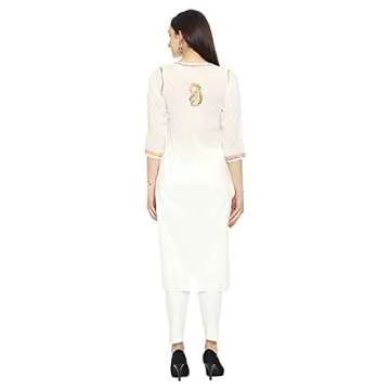 Ada Indian Hand Embroidered Chikankari Cotton Kurta Kurti with Trouser Set for Women A811226 (White, XL)
