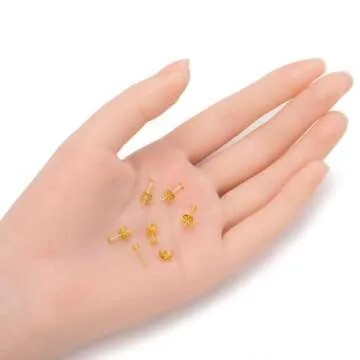 Adabele 200pcs Hypoallergenic Stud Earring Posts Findings Gold Plated 3mm Small Flat Board Glue On Setting 200pcs Earnut Backs for DIY Craft Earrings Jewelry Making CF222-3
