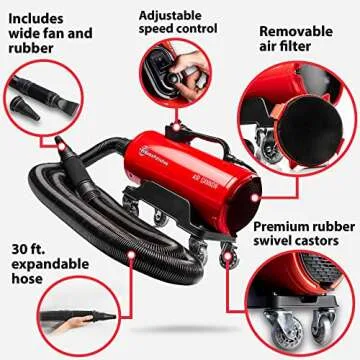 - Complete Drying Kit: Your purchase includes everything you need – rubberized attachments, a 15-foot power cord, and efficiently designed tips to maximize air flow for outstanding results.