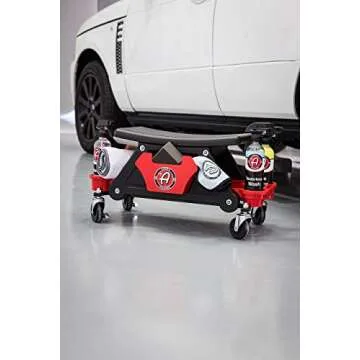 Show moreTransform your detailing experience with the Adam's Polishes Mobile Rolling Utility Creeper Seat, meticulously engineered for car enthusiasts and mechanics. This exceptional roller chair combines superior comfort with ultimate functionality, ideal for long hours spent in garages or during detailed polishing sessions. The design allows you to maintain a straight posture and avoids the strain of constant bending, ensuring you remain comfortable even during intensive detailing tasks. Standing out with its sliding undercarriage storage bay, this seat conveniently holds all your essential cleaning supplies along with two bottle holders, so you can work efficiently and painlessly.
