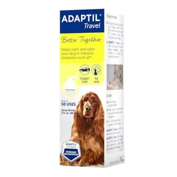 Whether you're facing the loud noises of thunderstorms or blasting fireworks, or navigating the challenges of travel or vet visits, ADAPTIL is here for you. The spray is simple to apply—just spritz it onto your dog's collar, bandana, or favorite blanket—and allows your pet to feel secure quickly. Each application lasts between 4-5 hours, ensuring your dog remains relaxed throughout the ordeal.