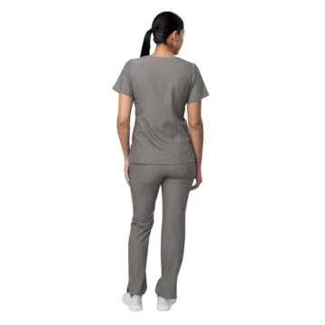 Experience a modern aesthetic with the V-Neck Top and Multi Pocket Pants Scrub Set, designed to meet the demands of today's healthcare professionals. The top showcases a double stitched V neck and curved princess seams, while the pants offer a mid-rise slim tapered leg with a soft elastic waistband for a secure fit.