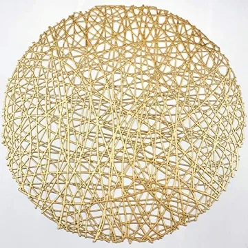 AdasBridal Gold Round Placemats for Dinner Table Set of 6 Metallic Hollow Out Line Circle Table Mats Vinyl Place Mats for Table Decor Wedding Accent Centerpiece