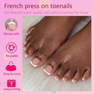 AddFavor Press on Toenails, 240pcs French Tip Toe Nail Press ons Short Square Fake Toe Nails 15 Sizes Pink Acrylic Toe Nail Tips for Women