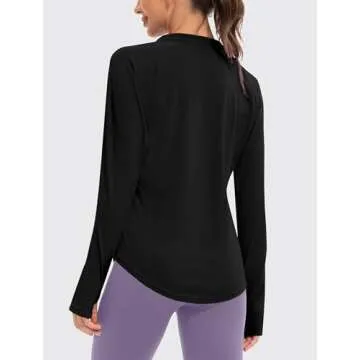 addigi Women's 1/4 Zip Pullover Long Sleeve Workout Tops Athletic Running Yoga Hiking Quick Dry UPF 50+ Sun Shirts with Thumb Hole Black Small