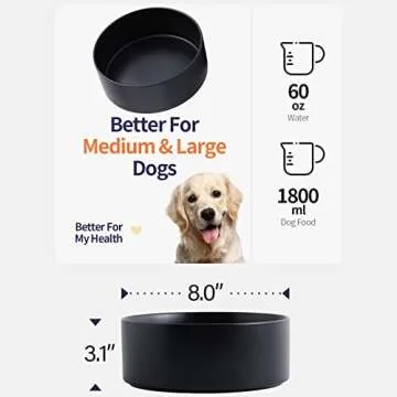 Addogyy Black Dog Bowl Ceramic for Medium Large Breed, Heavy Weighted Dog Food Water Feeder Dish, Non - Slip Modern Cute Extra Big Porcelain 8 in Pet Bowl Maze