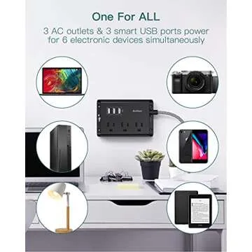 Addtam Power Strip ETL Certificate Flat Plug Extension Cord with 3 USB Ports, 5 Feet Braided Cord, Desktop Small Travel Power Strip for Cruise Ship, Home, Office Black