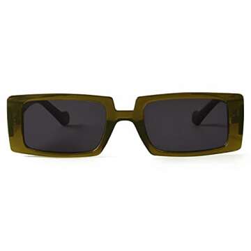 ADE WU Rectangle Sunglasses for Women Men 90s Vintage Fashion Cool Chunky Rectangular Rave Sun Glasses (Olive Green)