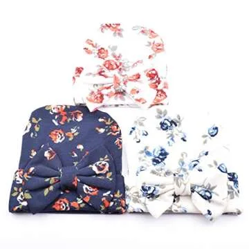 Ademoo Newborn Baby Girls Nursery Beanie Hospital Hat with Bow (Floral Bow 3 Colors/ 0-3 Month)