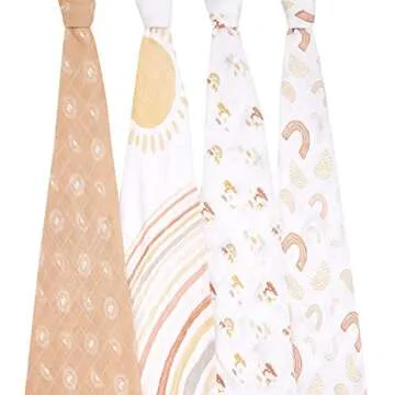 aden + anais Boutique Muslin Swaddle Blanket for Baby Girls and Boys, Newborn Receiving Blanket for Swaddling, 100% Muslin Cotton Swaddle Wrap,4 Pack, Keepin Rising