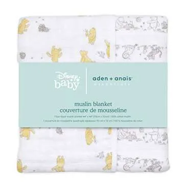 Show moreIntroducing the aden + anais Dream Blanket, the epitome of comfort and style designed exclusively for your little one. Crafted from the highest quality muslin, this luxurious blanket ensures vibrant colors and playful designs, including favorites like Winnie The Pooh, to complement any nursery decor. Measuring a generous 44" x 44" (111cm x 111cm), it provides abundant coverage for infants and toddlers, making it perfect for swaddling, cuddling, or playtime. Its soft and plush texture is not only a delight for your baby's sensitive skin but also breathable, helping to maintain an ideal temperature for restful sleep. Happy parents have affirmed that this delightful “Magic” blanket creates the perfect snuggly cocoon to soothe even the fussiest of babies, promoting peaceful slumber that all new parents dream of.