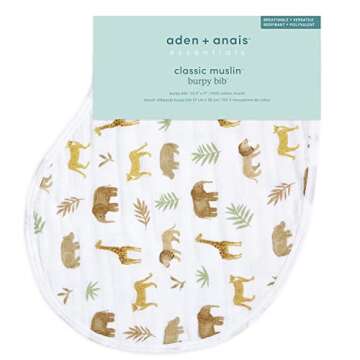 aden + anais Essentials Burpy Bib, 100% Cotton Muslin, Soft Absorbent 4 Layers, Multi-Use Burp Cloth and Bib, 22.5" X 11", Single, Tanzania