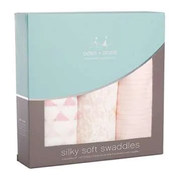 aden + anais Silky Soft Metallic Swaddle Blanket | 100% Viscose derived from Bamboo Blankets for Girls & Boys | Baby Receiving Swaddles | Ideal Newborn & Infant Swaddling Set | 3 Pack, Primrose Birch