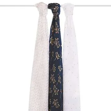 Show moreIntroducing the aden + anais Swaddle Blanket Set, where style meets functionality for your little one. This 3-pack of metallic muslin blankets is designed with the utmost care, ensuring your baby experiences the perfect combination of comfort and warmth. Measuring 47" x 47" each, these swaddles provide ample space for wrapping and securing your infant, suitable for both girls and boys. Crafted from premium breathable muslin, these blankets feature a stunning gold deco design that not only ensures elegance but also serves as a stylish backdrop for cherished baby photos. With super soft fabric that gets softer with each wash, these blankets guarantee durability and long-lasting use that can withstand the excitement of family life.