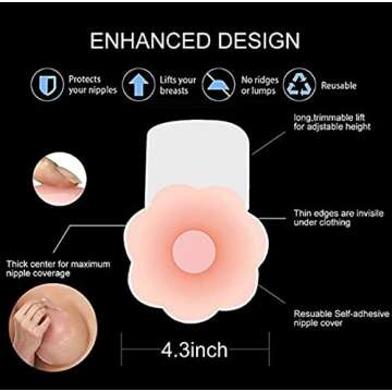 Show moreExperience confidence like never before with our premier Adhesive Bra, Breast Lift Tape Reusable Push Up Nipple Covers with Cotton Cover. This innovative solution is designed to lift your bust line instantly, giving you a youthful and attractive silhouette. Crafted with high-grade silicone and a soft cotton cover, these nippleless covers provide a seamless look under any outfit, making them a staple in your wardrobe. Whether you're dressing for a wedding, a night out, or a beach day, our breast lift tape ensures you look fabulous and feel secure!