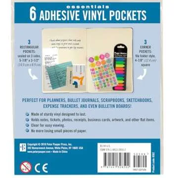 Show moreIntroducing the **Adhesive Vinyl Pockets for Bullet Journals** – a set of six versatile, stick-on pockets designed to transform how you organize and customize your planner! Crafted with high-quality vinyl, these pockets are perfect for holding cards, notes, and other small essentials, adding both functionality and style to your bullet journal. With their clear, glossy finish, they not only look appealing but are also sturdy enough to withstand daily wear and tear. What sets these pockets apart is their user-friendly adhesive backing, which ensures that they stay securely in place wherever you choose to use them. Experience the ease of access while keeping your items neatly stored and readily available!