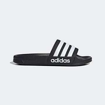 These slides boast a durable rubber sole that provides excellent traction, ensuring you can walk confidently on wet surfaces. One standout feature of the Adilette is its ability to dry quickly, making them an excellent choice post-swim or after a shower. Their minimalist design is chic and versatile, making them easy to pair with any summer outfit.