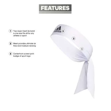 adidas Alphaskin Tie Headband, White/Black, One Size