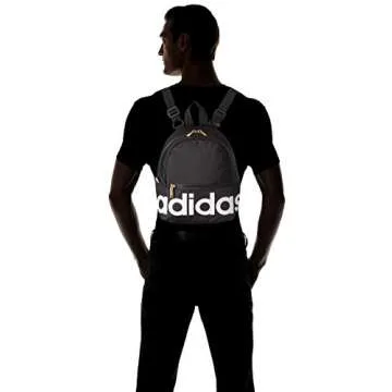 adidas Linear Mini Backpack Small Travel Bag, Black/White/Gold, 10.5 inch x8.5 inch x5 inch