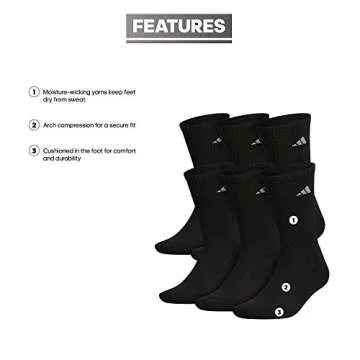 Show moreElevate your foot comfort with the adidas Men's Athletic Cushioned Crew Socks, a perfect fusion of style and functionality that caters to the active individual. Each pair is meticulously crafted from moisture-wicking yarns designed to keep your feet dry and comfortable, regardless of the intensity of your activities. The plush cushioning provides exceptional support that feels like walking on clouds. Whether running errands, working out, or simply enjoying a relaxed day, these socks promise to deliver unparalleled comfort.
