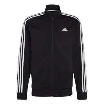Show moreThe adidas Men's Essentials Warm-Up 3-Stripes Track Top is more than just a jacket; it's a perfect blend of style, comfort, and sustainability. Crafted for the modern man, this track top features an elegant black and white design that is sure to turn heads, whether hitting the track or lounging around the house. Its regular fit provides the perfect balance between snugness and freedom, making it ideal for active lifestyles or casual outings.