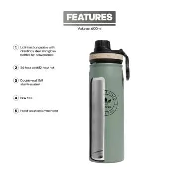 adidas Originals 600 Ml (20 Oz) Metal Water Bottle, Hot/Cold Double-Walled Insulated 18/8 Stainless Steel, Silver Green/Black/Wonder Beige, One Size