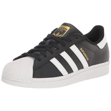 Show moreStep into style and comfort with the adidas Originals Men's Superstar Sneaker, a true icon reborn for contemporary fashion. This sneaker stands tall with its timeless Black/Core White/Black palette, making it an unbeatable companion for any outfit. Whether you're dressing up for a night out or keeping it casual on the weekend, the Superstar effortlessly blends with your wardrobe. Crafted with a premium leather upper, it ensures durability while delivering a plush feel that your feet will appreciate. The trademark shell toe offers not only distinct aesthetics but also an added layer of protection you won’t find in most sneakers.