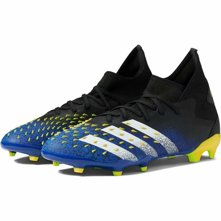 Show moreThe adidas Predator Freak .2 Firm Ground Soccer Cleats are designed to elevate your performance on the soccer field. Crafted by the renowned brand Adidas, these cleats feature a sleek and modern design in Black/White/Team Royal Blue, ensuring you stand out during gameplay. The synthetic material provides durability and comfort, while the firm ground outsole is engineered for optimum grip on natural grass fields.