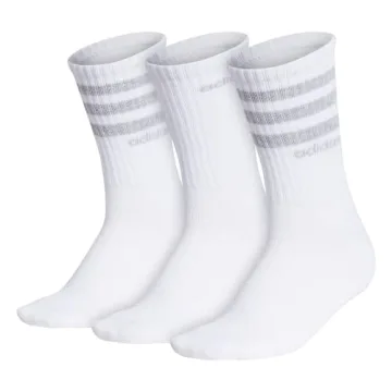 Show moreIntroducing the adidas Women's 3-Stripe Crew Socks in a chic combination of White, Cool Light Heather, and Clear Onix Grey. This 3-pair set is designed for the modern woman who values both style and function. Each pair is crafted with moisture-wicking yarn that keeps your feet dry, making them perfect for workouts or everyday wear. The cushioned footbed ensures maximum comfort and durability, while the soft, stretchy yarns provide a snug fit that feels great all day long. Experience ultimate foot support with every step you take, whether you’re hitting the gym or simply relaxing at home. With these socks, you’ll enjoy the perfect blend of athletic performance and contemporary design, making them a must-have in your wardrobe!