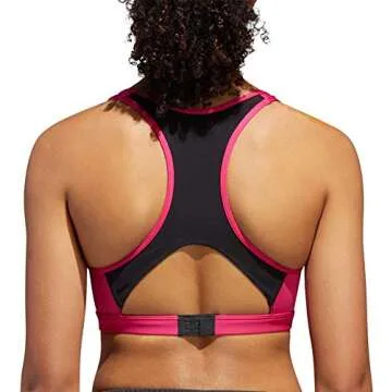 Show moreThe adidas Womens Racer Sports Bra in Real Magenta is the ultimate blend of style and functionality for active women. Designed for maximum comfort and support, this sports bra features a sleek racerback style that allows for unrestricted movement during any workout. Made with moisture-wicking fabric, it keeps you dry and fresh, while the vibrant color adds a pop of personality to your workout ensemble. With an X-Small fit, this bra hugs your body perfectly, ensuring a snug but comfortable feel that energizes your every move.