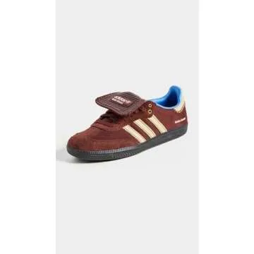 Show moreIntroducing the adidas x Wales Bonner Samba Sneakers, where style meets comfort in a gorgeous fusion of colors—Fox Brown, Sandy Beige, and Lucky Blue. Crafted with precision, these sneakers feature a blend of premium leather and suede trim, designed to not only stand out but also provide ultimate support for your feet. The fold-over tongue adorned with the iconic brand patch adds a unique flair, making them an essential part of any outfit. With their round toe design, you’ll enjoy ample room for your toes, making them perfect for all-day wear. These sneakers are perfect for those who refuse to compromise on comfort while staying fashion-forward.
