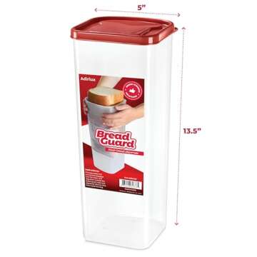 Adirlux Bread Box with Airtight Lid - Kitchen Counter Fresh Bread Storage Container For Sandwich Loaf, Sliced Breads - Clear Rigid Plastic, [BPA Free ] Red Lid [Pack of 2]