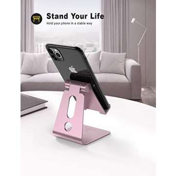 Adjustable Cell Phone Stand - Lamicall Phone Desk Holder, Cradle, Dock, Compatible with iPhone 12 Mini 11 Pro Xs Max XR X 8 7 6 Plus SE Charging, Desktop Accessories - Rose Gold