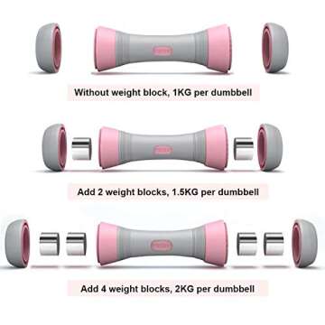 Adjustable Dumbbells Sets for Women, Dumbell Set Non-Slip Neoprene Dumbbells Free Weights Hand Weights for Exercise, 5 Weight Options from 2.2 to 4.4 lbs, Dumb Bells Workout Mancuernas