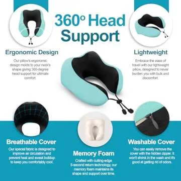 Show more The Travel Pillow for Neck Support & Comfort is the ultimate solution for those seeking relief during long journeys. This carefully crafted pillow is designed to offer optimal neck support in a 360-degree manner, ensuring that your chin remains in a straight position. Say goodbye to neck unease, headaches, or discomfort experienced during flights or road trips! With our pillow, you can experience a rejuvenating sleep, making your travel time enjoyable.