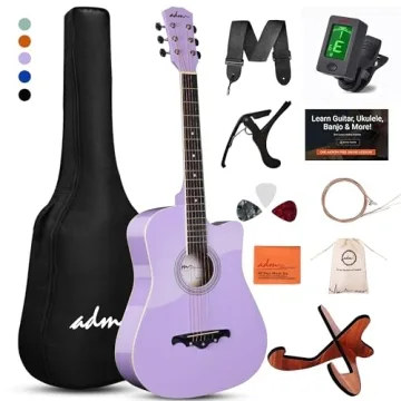 ADM 38" Inch Acoustic Guitar Bundle for Beginners Adults with Online Lesson, Cutaway Wood Acustica Guitarra Starter Set Package with Gig Bag, Strap, Steel Strings, Picks, Capos, Stand, Purple