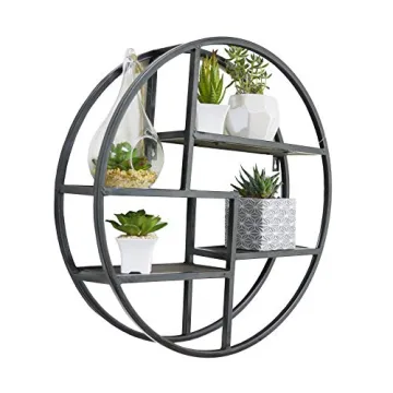 Show moreDiscover the perfect blend of style and functionality with our stunning wall-mounted hanging shelf. This exquisite decorative piece, crafted by a leading brand in home decor, features a unique design of intersecting metal and sturdy wood, making it not just a shelf, but a work of art that elevates any living space. Measuring at 4'D x 18'W x 18'H, this circular shelf provides a chic display area for your cherished trinkets, vibrant plants, or books that you love, allowing your decor to shine.