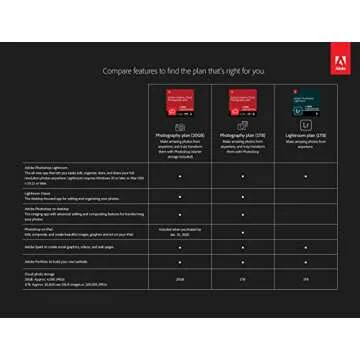 When it comes to comprehensive photography solutions, the Adobe Creative Cloud Photography Plan holds a significant edge over its competitors. Unlike other software that may offer basic editing capabilities or limited storage, this plan integrates the powerhouse that is Photoshop for an unmatched editing experience alongside Lightroom for organization and management. Other photography solutions may lack the vast storage options and additional modules for publishing, making Adobe's offering not only more powerful but also more user-friendly and versatile.