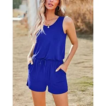 ADOME Rompers for Women Summer Casual Sleeveless Jumpsuit Tank Top Short Romper with Pockets Blue S