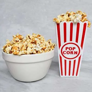 Show moreExperience the joy of movie night, parties, and events with the Adorox (Set of 4) Movie Theater Style Popcorn Containers. Perfectly designed to recreate that classic cinema vibe, these popcorn containers are made of durable, reusable plastic that ensures you can enjoy your favorite snacks time and time again. Whether you’re hosting a birthday bash, organizing a school activity, or just binge-watching your favorite shows, these containers elevate every occasion with their eye-catching classic red and white striped design. Each set comes with 4 containers, making it easy to share the fun with family and friends!
