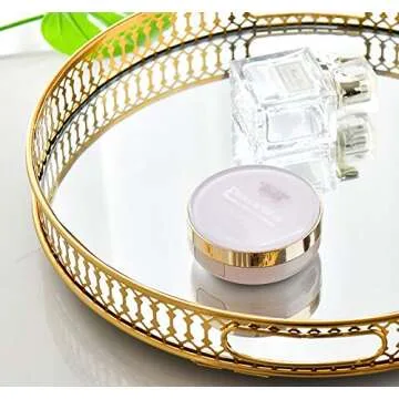 ADOUS HOUSE Metal Mirrored Ornate Decorative Tray Jewelry, Tray 12'' x 2''