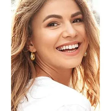 Show more Elevate your accessorizing game with the Adoyi Gold Hoop Earrings Set, a stunning collection designed for the modern woman who appreciates both style and comfort. Crafted from high-quality 14k gold plating, these earrings are both hypoallergenic and free from lead and nickel, ensuring that you can wear them all day long without discomfort. Whether you're dressed for a casual day out or a glamorous evening event, this versatile 7-pair set offers a range of designs that suit any outfit or occasion. The exquisite craftsmanship guarantees a beautiful shine that won't fade, maintaining that elegant look you desire.