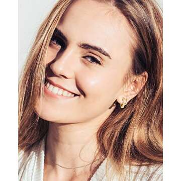 Show more Introducing the exquisite Adoyi Gold Hoop Earrings Set, a stunning collection designed specifically for those who appreciate elegance and versatility. Crafted with care, these earrings are made of 14K gold plating, ensuring a luxurious appearance while remaining affordable. You can trust that each piece is hypoallergenic, free of lead and nickel, making them safe for sensitive ears. With over seven months of daily wear, our customers rave about their durability, making these earrings a long-lasting addition to any wardrobe.