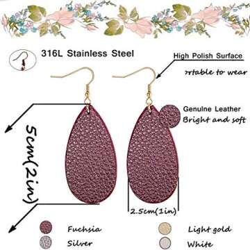 Adramata 4 Pairs Teardrop Leather Earrings for Women Dangle Drop Earrings Set