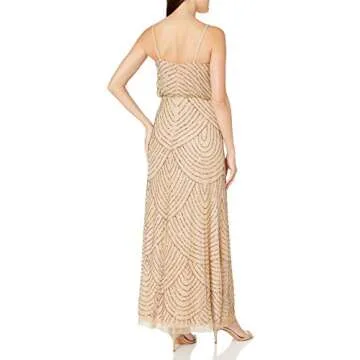 Adrianna Papell Women's Art Deco Beaded Blouson Gown, Champ/Gold, 14