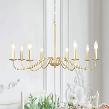 The gold metal finish adds a touch of luxury, while the firm construction ensures durability and longevity. This chandelier requires 8 x E12 base bulbs (not included), giving you the flexibility to choose between incandescent, LED, CFL, or halogen bulbs up to 60W Max. Customize your lighting according to your mood and needs!