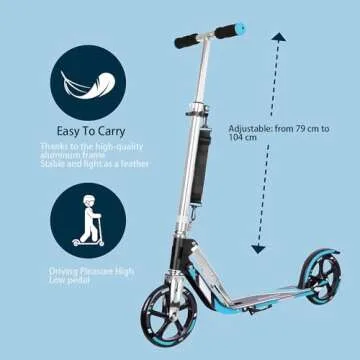 Show moreThe LEEYV Adult Scooter is an innovative, versatile solution for those seeking a faster, more convenient way to navigate their surroundings. Suitable for adults, teens, and kids aged 6-12, this folding scooter features an impressive weight capacity of up to 220 lbs. Its sturdy yet lightweight all-aluminum frame combined with big wheels ensures a smooth ride on various terrains, whether you're commuting to work or enjoying a leisurely ride with family. The scooter's patented folding system allows for easy storage and transport, making it perfect for taking on the bus, subway, or even to your favorite coffee shop. With adjustable handlebars height options (35", 36.6", 39.7", 42.1"), it guarantees a comfortable experience for riders of all sizes!