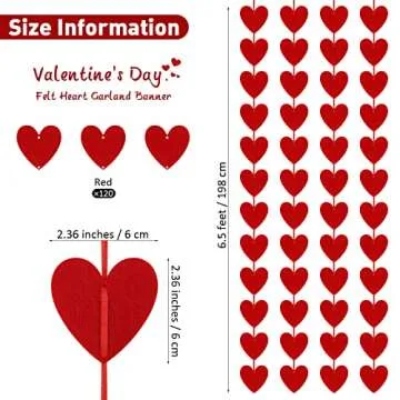 ADXCO Valentine's Day Heart Banner Felt Heart Garland Heart Hanging String Garland Valentines Day Decor Banner for Wedding Birthday Valentines Home Ceiling Party Decorations (Red)
