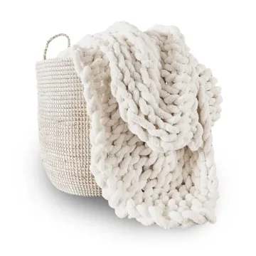 Show moreIntroducing the Adyrescia Chunky Knit Blanket Throw, your new favorite retreat for moments of relaxation and comfort! Crafted with 100% hand-knit jumbo chenille yarn, this blanket is designed to envelop you in a luxurious, soft embrace, making it perfect for chilly evenings and cozy weekends. The stunning cream white color effortlessly complements any décor, adding an elegant touch to your living space. Its generous 40"x50" dimensions provide ample coverage, allowing you to snuggle up on the couch, drape it over your bed, or use it as a stylish decorative piece.